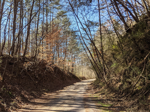 The trailhead of the rail-to-trails greenway is formed by a ballpark, dog park, and an interesting looking playground. The parks and trailhead are right at the inviting looking creek with small shoals running over shale. An old railbed is a perfect location for a trail but since those rails were engineered to avoid curves and slopes, they make for boring hiking trails. Bring your bike and be happy or put on your running shoes for a fast run on a flat, well maintained surface, but bring a podcast when you are hiking or walking. Starting at the ballpark you quickly reach the intersection of Leora Ave and Stouts Rd where the dog park is. Walking for about 1 mile on the wide and immaculate trail, but way above the creek, you see the first "Creek Trail" sign. The narrow footpath, something I call a trail, leads you down to the creek where you Tee into a service (dirt) road that is used by ATV enthusiasts (I saw 4 ATVs today). Even though a road, I like this trail better since it is next to the creek, offers several ford crossings that can be a bit daunting after a rain, but don't worry, you don't have to walk through the creek and find your own trail alongside the creek to the next ford. Bring your kids, explore and play. All in all an...