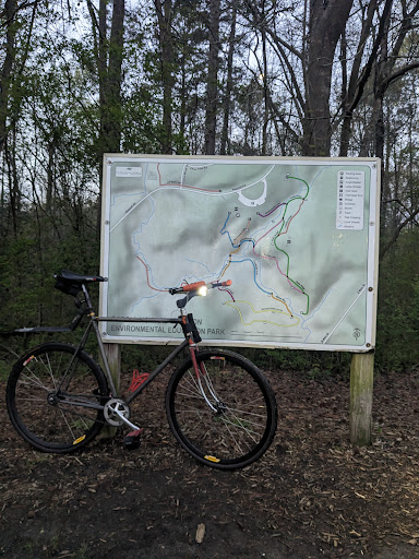 The park is easily accessible by bicycle, but I did not notice any bike racks in the area or notice anything prohibiting cycling on the trails. However, the wide trails are great for hike-a-bike and I did that.