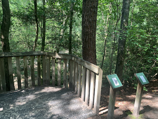 There is a lot of variety in the habitats and trees, everything except the main sign is pretty well marked, there are benches and lookouts and a really nice shelter for groups. There's streams and ponds, huge red oak and pines. The trails all seem to converge eventually _ we had no clue where we were going and ended up doing a nice half mile. Nothing challenging, but the trails are just dirt, lots of tree roots, so wear good shoes.