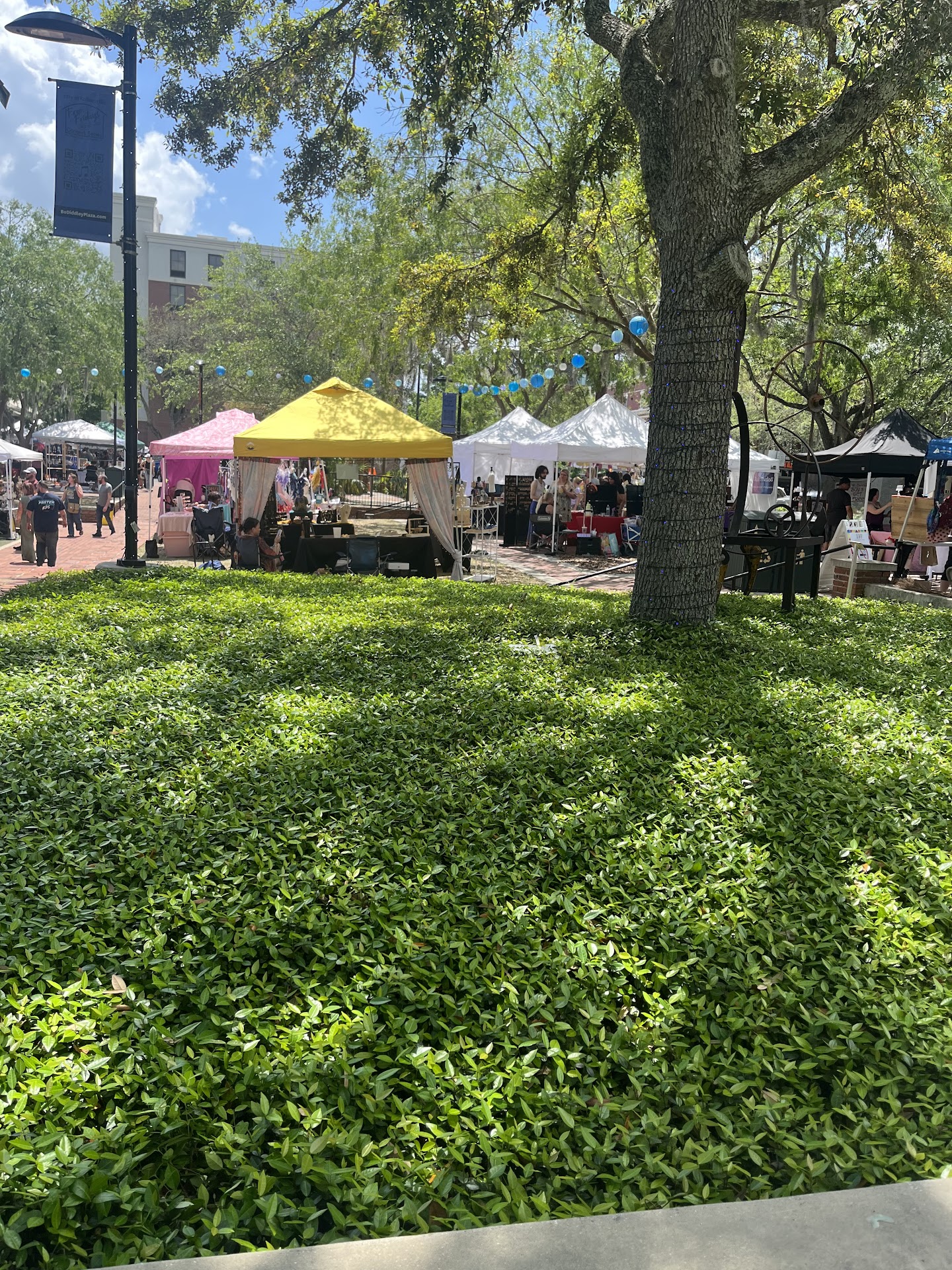 A beautiful plaza with amazing additions since the 2016-2017 renovation! Catch a musical act (or a few - Friday evenings during the summer they have great tribute shows), a fitness class -my favorites are Yoga, Nia, and Zumba on a breezy morning, or a great number of other community events in this plaza. An awesome spot for Gainesville to get together, right in the heart of Downtown, near restaurants, bars, coffee shops, and plenty of history and culture. The restaurant in the back corner, Steamers, sell delicious fried rice, curry, drinks, and other tasty meal options. BE SURE to check it out, because it's a great option to grab food, sit, and enjoy whatever is going on at the plaza. Other good eat-at-Bo-Diddey options around are the frozen treat places - Gelato Company, Hyppo (popsicles), and Mochi (Froyo). On sunny days, watch your feet on the hot astroturf area directly in front of the stage, and never make the mistake of sliding on it, lest you go home with some...
