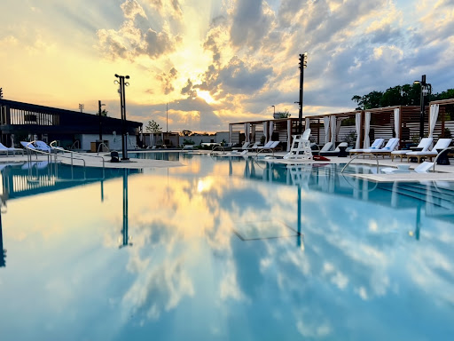 Read moreSUMMARY: Yes I recommend visiting, but do your research before you go, pre-order your seats in advance, and give the staff some grace because some of them seem to still be in training. SCENARIO OF OUR VISIT: Two adults, we pre-registered for our “Lounge Chairs”. You pay half the cost online as a deposit when you pre-register. [NOTE: each type of chair is a different price tier. We chose the cheapest price of chair.] When you have a reservation, the check-in process goes fast when you get to the counter. People without a reservation stood there a while with a lot of questions. Staff walked us to our seats and they laid out the towels for us and our server came by to introduce herself. Attentive service most of the time, it depends on the staff. USING THE POOLS: Once you’re inside, no matter what seat you have, you can visit all the pools and walk around the entire area. There are three pools that are for ages 21 and up. During our stay, the kids did not enter that area and so I was glad it was controlled. We were able to order food and we were told we can eat it anywhere we want, even eat while in the pool. AMENETIES/PRO’S: Shop area in the entrance with sunscreen, suits, hats, etc. Multiple restrooms. Water fountain and water refill stations. Every assigned seat has shade of some sort such as an umbrella or covering (size and amenities vary). Six pools. Lounge chairs in the water that are first-come-first-serve. Chairs in the water in one of the 21+ pools that is right next to a bar. Seating area for eating food or relaxing, first-come-first-serve, which is under the shade. Menu has a variety of food and did not take very long to arrive. Pretty foliage. Crystal clean pools. One of the pools is 8-inches deep the whole way through so it’s more for sitting or lounging in it, or for little kids. Wheelchair friendly and some of the pools have ramps into the pools if you can’t do stairs. Music is low-key but audible during the day, and we experienced some music from a DJ that started mid-day and it was a great mix of music. CONS: No hot tubs. No public showers. No changing area unless you’re okay changing in a bathroom. Music from the DJ was too loud in some areas. No pool toys allowed (but we saw kids breaking that rule, and staff let them. No swimsuit dryers (like the ones in the Winstar Spa). They can close for bad weather, and they don't give refunds...