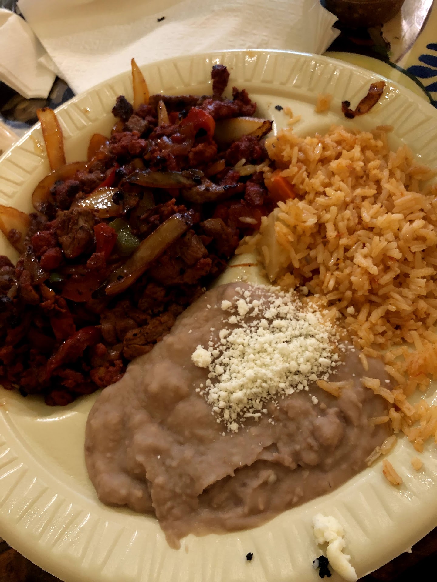 I ordered a steak & onion burrito, The steak quality was very good. It was prepared very simple with only beans, rice, grilled onions and I added cheese. I would have loved some lettuce and tomato too but didn't want to complicate my order. I used the green salsa to add some extra flavor.
