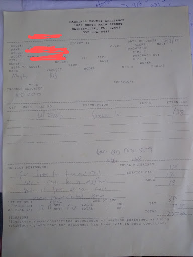 Read moreIt was the day before Thanksgiving and we had two technicians from Martin's Family Appliance come out to look at our 4-year-old washing machine (purchased from Martin's Family Appliance) that was not working and had an error code. We received an on-call appointment. When the technicians arrived my husband explained the problem that the machine had error code 40 and the code was present on the machine. I asked why a 4-year-old Fisher and Paykel appliance would already be needing service. The main technician shrugged and said it's old. So they replaced the stabilizers in the machine and said everything was fine. The bill came to over $300 dollars (with most of the money going to the service charge). They left and we went to test the machine. The machine was still showing error code 40. The technicians never tested the machine before they left. They wrote on the bill that they had tested the machine but if they would have actually tested the machine, then they would have seen the error code. My husband tried to contact the service department on the same day but they were not able to come back out. After several google searches and youtube videos my husband eventually fixed the machine himself. The following week, he went to the store to talk about the issue with the owner. The owner's response, "He (one of the technicians) is one of my best technicians." The owner seemed in disbelief that he did not test the machine before he left our home. The owner did not do anything to fix the situation on our end. We paid a service charge on November 25th that left our machine still broken. I don't mind paying for a service if the service would have actually fixed the machine. We spent so much time trying to figure out how to fix the machine on our own. Overall, I am not satisfied with the customer service and the fact that a four-year-old washing machine purchased from their store is already broken. We chose to buy local and support the business - maybe this...