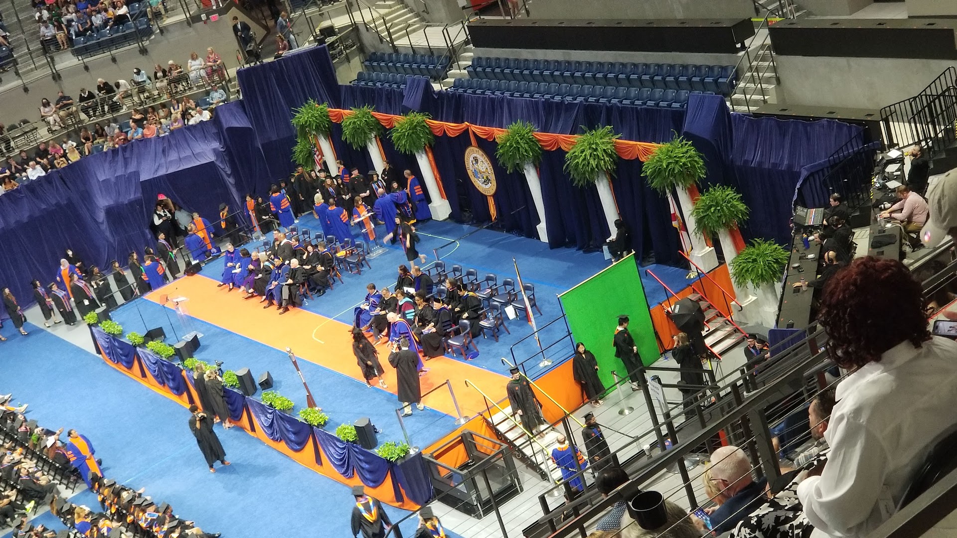 Seats are very small, made for young thin people!! I sat next to a complete Bitc# who told me I was half sitting in her chair, I was not. I had politely asked if the seat was taken. She saw me (I am overweight) she saw the size of the seats (it was tiny) and still told me it was not taken. If I had been a large man had sat next to her she surely would have kept her mouth shut!! But she felt the need to give me her opinion!! My answer was I can't change the size of the chair!! I moved to a better seat in the row in front of her and had zero problem with the man I sat next to. All that to say the seats could be a bit bigger!! And if you are asked of a seat is available and you don't actually want to have a person sitting next to you tell them the seat is taken & Don't be a rude Bitc#!!!!! Also, the "lady" and her group of 10 people just got up and left as soon as their graduate had finished walking across the stage!! I guess rude is...