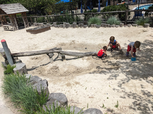 Read moreI almost don't want to share how awesome this park is because it was almost like a secret garden park. The slides were out of service but there was so much to love still. Hand pump that creates a cool stream around the landscaping, picnic area, reading area with a free little library, climbing areas and the best part for my kids, the sand play area with water feature so you can really play like you're at the beach! All made from recycled wood! With beautiful gardens and trees! Only problem is there is no public restroom but the folks at the community center with the pool were kind enough to let the kids use the restroom (not sure if that's standard or we...