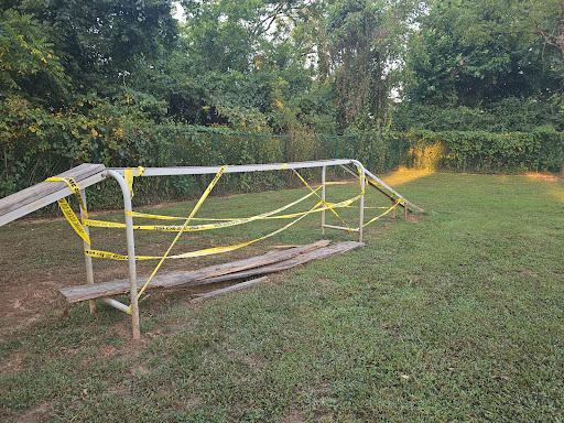 I love to bring my dog here, however some of the equipment is broken, and dangerous they finally put tape around one thing however dogs can't read, they run up the ramp only fall on top of busted up wood under ramp, as you can see in one picture there is a ton of peices of wood and would be a simple fix, also it's not even caution tape, it's a crime scene tape. It's frustrating that someone is getting paid good money working as maintenance for the city, but is to lazy to pick up the broken wood and clearly does not care if some dog gets hurt, and wow it needs 3 boards, hammer and nails to make it new again. Another thing broke is the gate every dog slips threw the gap to play with dogs on other side, another very simple fix, the gate doors to enter into the fenced area one is missing the others u can't latch because they are not the correct size..makes me mad that maintenance does nothing but cut grass, and don't say not in the budget because the things that need fixing, to not be dangerous would cost less than 100. And thats our taxes. Do your job before some child or dog gets hurt. Just pure laziness, and doesn't care, just...