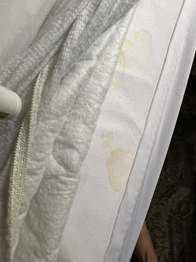 Very nice-looking hotel when you enter the front doors and your room (until you look closely & see that it isn’t clean). The big, gravel parking lot is a bonus! It seems like that they have an issue with over-booking though, so beware. Our room was filthy the further I looked, but we couldn’t change rooms because they over-booked. There were hairs in the shower and on the pillows, a layer of dirt on the bed-side tables and on the bathroom sink, soap stuck to the sink handle, food behind the bed, and the worst of all: URINE STAINS ON THE BEDDING! I didn’t even want to sleep in the bed, but I thought it might be cleaner than the floor. I was going to put new sheets on from the closet, only to find chunks of dirt on those. I didn’t trust anything being clean in the room anymore and showered thoroughly. The AC in our room barely worked, and stayed at 75 the whole night, which had us sweating profusely. We had it set at 62, then 65 to see if that would help it work faster (nothing worked). The lady at the front desk didn’t have much sympathy (she proceeded to stare at her computer screen and pretty much ignored me), and so I finally just asked for a fan so we would be able to get a little sleep, and she gave me one that was dirty. She also told me that they had maintenance workers cleaning the rooms at the last-minute because they over-booked. I should’ve taken a picture of the wash cloth I used to wipe off the bedside table (pictured below with gunk around the outlet) because it was filthy brown!