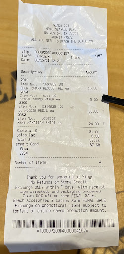 Read morePlace is a joke. Was double charged for a basic chair. Overcharged for an umbrella that was broken (we tried taking it back right after we planted it in the beach and they were absolutely adamant about not even giving us a replacement.) Don't get me wrong I knew better. Staying summers near Myrtle Beach in the 90s wings were everywhere, and trust me when I say they haven't changed one thibgg and still sell the same garbage. Again, I knew better, but we needed chairs and an umbrella. Why I didn't go to the local Kroger or surf shop first is beyond me. Maybe I was teaching the kids a valuable lesson on getting ripped off. I honestly can't believe these places are still in business, but it's idiot tourists who know better like myself and keep them running because of the convenience. It hasn't changed, the management hasn't changed, their insane policies haven't changed, the prices have gone up, and every single last thing in the store is junk that will break in a matter of days or a few weeks. Stay far....far away.