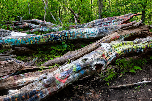 Well, who else none other than me would accidently take my family to a "Portal to Hell" cleverly disguised with the cutesie name of "Hippie Tree". It wasn't until in the car on the way there when I happened to be reading out loud to my family the history of the tree and why exactly we were taking paint to graffiti a random tree in the middle of the woods, that I suddenly realized the accidental history lesson I was providing to my kids just moments from our destination. My 5 year old twins and 9 year old daughter were left with many questions after Mommy began reading out loud information regarding the tree's famous history... that it was referred to as the "portal to hell" from previous residents of the asylum, the legend of the priest that was found hanging in the tree and where the whimsical nickname "Hippie Treee" actually derived from. Despite traumatizing my family for life with a vacation stop with a historically haunting background, my family had a great time hiking out and finding the Portal to Hell. We brought our own paint and made our mark, saw some nature and made some great family memories! I highly recommend making this a stop if you are visiting the area, just mayyyyybe skip the history lesson and don't forget to bring...