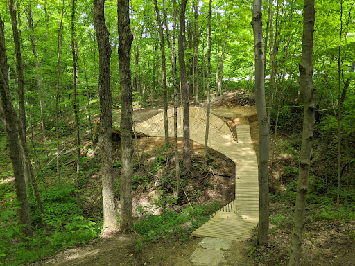 As a beginner on a short travel hardtail in the rain doing the trail backwards, you will learn mtb technique or die trying. The signs are only posted in one direction of travel, and the maps have directional arrows. The features are designed to only be appoached from one side( eg large wet roots protruding feet from the approach). Despite all this, the national gold medal winning Ohio State Parks requires you to ride the opposite way depending on the day of the week (sic!). The trail is an unhappy combination of overprocessed improvements and sheer deathtraps, punctuated by loose cobbles and sapplings left standing in the center of the path. The redeeming qualities are the veiws and wildlife you will encounter. Lumber planking on a forest floor in the Ohio climate is a terrible choice, the trail would be better with it all removed, save the one or two necessary bridges. The State has rushed off to build more mtb trails and is not maintaining the lumber skinnies. Overall, it's a much more enjoyable experience to ride trails not dedicated to mtb, or not even official trails at all, if you know...