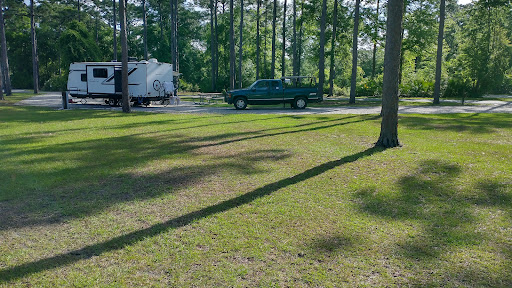 Read moreStopped here 2 days on our way home. After paying $94.16 for two days online I had to pay another $3.75 on arrival for a 'pass.' Not much to do here. Would not spend more than a day here again unless you want to take a day trip out to the Okefenokee Swamp. Other than that, given the cost it's only worth an overnight. There are two sides, one is just a large open grass field with no privacy between sites. The other is wooded with some privacy. Most of the sites here are huge, some will take 3 rigs. Sites are just dirt/sand but were level. There is an area with some cabins, which are just small houses. We never did find the tent-area. Some walking paths, not many. There is a nice day use area with a playground. Restrooms/showers are single use. So, each bathroom has a shower in it. They are clean but spartan. The showers are prison-issue non-adjustable but good pressure, not too hard. Only 2 hooks and one tiny soap shelf. No curtain, just a jack-and-jill wall. Laundry is clean but requires an app, so we didn't do wash here. There is a put-put golf which is ok, needs a little love. There is a nature center, but it is hard to find, only one tiny sign at the roadside. The building has a sign labeling it but is covered with overgrown foliage. It was closed when we stopped by. Don't try to drive there, just walk to it. There isn't a parking lot there. The front office has a little gift shop with a few snacks and ice cream. They also rent bikes. We camped at Crooked River State Park in a...