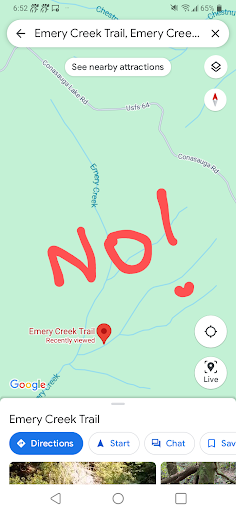 NOT THE TRAILHEAD!!! So many people are posting pictures and reviews here as if this was the TRAILHEAD of the 3 mile hike on Holly and Emery Creek that goes to the waterfalls - it's not! Directions WARNING!!! Do not click on or put "Emery Creek Trail" on Google Maps or GPS and think you are going to the great Emery Creek Trail along Holly Creek and Emery Creek with 10 creek water crossings you must walk through and great swimming holes and waterfalls. I did just that and followed my GPS and ended up on top of a mountain - my GPS told me I was at my destination but there was nothing but forest. ( I was driving so I didn't check the maps until it was obvious I was in the wrong place). You CAN access the Emery Creek Trail from the top of Little Bald Mountain at the Ball Field Dispersed Camping area but, you would be descending the mountain for 4+ miles before you hit the upper waterfall. This is not the popular end of the trail. It looked rarely used. This might be a nice hike on its own but we only went 30 minutes in and then turned around because it was getting late and we wanted to find the creek and swim. Also the sign here that says "Overlook 0.3 miles" does not mean waterfall overlook. It's a mountain view mostly blocked by trees but there is a nice northern slope covered in ferns. When I was finally able to get cell signal and look at the map I saw "Emery Creek Trailhead" for the 1st time down on the CCC road. I came in from 575 and it would have been a lot better coming 75 to 411. We checked out the trailhead and swam in the creek. Didn't mind the drive in the mountains and we saw a bear we would have missed if we didn't take the detour up to the...