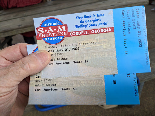 Our visit was for the 1st of July 2023 fireworks display. The train departed from Georgia Veterans State Park and traveled to Leslie, Americus, and ended in Plains for the fireworks and the return trip to Cordele.