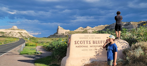 Read moreLove the Scottsbluff National Monument. Worked there as it was my 1st job when I was 16 years old. I gave living history performances dressed as a prairie wife waiting on my husband who went fishing nearby at the Platte River while outside I'm making pancakes, hardtack and very black coffee over an open fire. I also showed them the many things brought along with them. Little trinkets to set on their forever home mantle and wrapped with care for the rough terain. Showed them the clothes worn, hair brushes, food brought with them. I enjoyed that so much and met people from all over the world. The walking trail to the east of the museum winds a bit and is not long but watch for rattlesnakes on the trail. This walking path believe it or not goes all the way to the top of the bluff and you see a beautiful scenic view of the panhandle. If you don't feel like walking you can drive up to the top and take in the view. If you came on a bus just passing thru you can also go up the driving road. To the west of the museum there is another short trail but this one you can see the original wagon rutts by seeing the depth of the trail your walking in is actually the worn down trail as the pioneers passed through with their heavily loaded wagons. The museum has many artifacts and writings in the sandstone from pioneers that made their stop here. This was one of the landmarks the pioneers used as a visual map to get from Chimney Rock to the bluff. You won't be disappointed. Please stop in and take in the aerial...