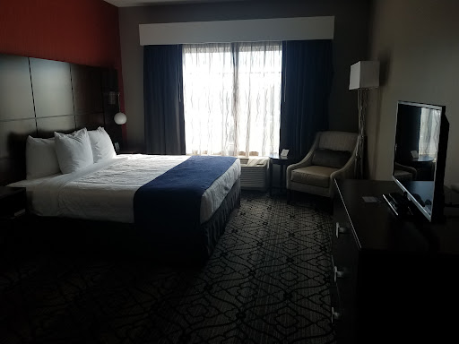 Read moreStayed one night here on a weekend. The room was basic. The hotel is new sovit was clean but nothing about it stands out about it. We paid for the room with a view of the battlefield, before you make the same mistake look at the photo I took. From my room I got a great view of another hotel and a small view of the side of a field next to the cemetary. But to even see that I had to move furniture out of the way. We were going to use the gym before we realized that it is at the front of the hotel with windows facing the street and sidewalk, no privacy at all. The same is true for the pool. The breakfast upstairs is about what you can expect from any hotel, waffles, eggs, toast. Once again nothing special. I did have a bad problem with noise in the hotel. The room walls are very thin and I could hear the elevator go up and down from my room that was well away from the elevator. I also had to deal with teenage kids partying about four rooms down from me. I understand that the hotel can't stop everything, but their inability to even attempt to handle the problem was disturbing. The next morning I asked to talk to a manager about the noise issue that lasted till midnight and was told no manager was on duty for the weekend. When I insisted they call one the manager said that she would deal with the problem when she came back to work three days later. I would not recommend to stay here if you have any other options. The motel across the street has a much better view of the battlefield and...