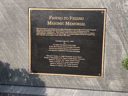 The Friend to Friend Masonic Memorial is a Gettysburg Battlefield monument depicting the "Armistead-Bingham incident" in which Union Army Captain Henry H. Bingham assisted wounded Confederate Brigadier General Lewis Addison Armistead. Both men were Freemasons.