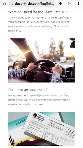 I came in to have my license updated with my new last name and was successful. However, when my license came in the mail, my printed signature was so tiny you literally need to use a magnifying glass to see it clearly. I needed to apply for my Newborns birth certificate and the state would not accept my signature on my license as you can't see it clearly. I came back into this same Desert Title again and they kindly redid my driver's license but kept insinuating I didn't sign my signature large enough on the pad. This time I signed from top to bottom, left to right, my entire signature fitting to the area on the pad and the woman who assisted me watched and ensured. I got my license again in the mail and the signature was still too small to see. I came back a third time and this time, the same woman told me I needed to go to a state facility because maybe they have better equipment and they tried the best they could. I paid $50 for the convenience of coming to this place. It isn't my fault and now I'm being sent to a DMV. I asked if this is common and the woman told me "no you're instance is the first ever". If that is the case why not fix my issue and make the $50 and inconvenience worth my money, stress, gas, and all the inconveniences related to this issue. I was told by a man working there also that this is a glitch and he also received his license with a signature too small to read from the DMV. I also read complaints online of this happening to others receiving a license with an extremely small and unledgible signature. But don't take my money and then not make it right. I believe my issue should have been resolved better since they took my money instead of sending me away. It's frustrating all I'm having to go through just to get a drivers license which is impacting other things. I guess should have went to the DMV in the first place instead of avoiding it and coming here. I have not been rude or given an attitude at any point during my exchange withe these people at Desert Title and I'm disappointed in...