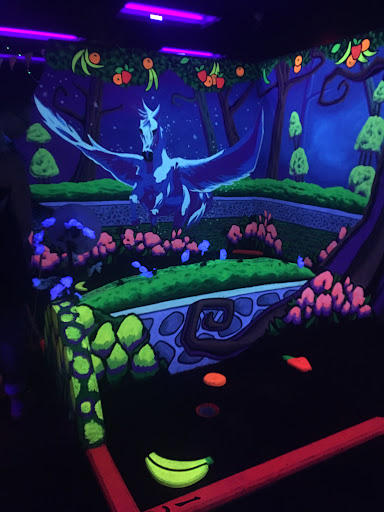 My fiancĆ© and I came up from Tucson for the weekend to do a few things up here and one place I wanted to go was here after seeing a friend post on Facebook about it. It looked so cool and fun and it sure was! The staff staff was full of younger guys and I was quite surprised at how welcoming and helpful they were. They were super nice and told us the story about how the designs were inspired by the owners son. It’s your typical 18 hole course but the pictures make it amazing. They also support local small business and give you coupons which I think is cool of them to do! I’d definitely recommend this as a fun cheap date or event for the kids. The only negative part I’d say we had was the 3D glasses weren’t big enough to fit over normal glasses so if you’re like me who’s totally blind without my glasses I couldn’t wear the 3D ones but the pictures still look really cool even without them. Also they clean the glasses with Clorox wipes so there’s like a filmy residue on them which also makes it hard to see out of. Other than that it was great!