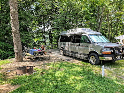 Read moreMt Gilead is an interesting state park. The camp sites are located within a short, hilly walk to a very small, scenic lake with two bridges and dams or spill off areas. The hiking trails are good with a few steep areas so I would recommend being in decent shape before hiking or walking down to the lake. We are 62 & 63 and pretty fit. The camp site, we reserved (#6) was small with a wooden terrace, which we enjoyed. I put up blankets along each side of the terrace for additional privacy and also so our old dog wouldn't bark at our very close neighbors. The terrace also kept us from public display. It was a full service site. The sites are close together throughout the campgrounds but there are a few electric sites that are spacious. We had excellent neighbors and our area was quiet. We really enjoyed our stay, clean surroundings, good hikes, good neighbors and the privacy our little terrace gave us. I would strongly recommend looking how close the sites are before reserving, especially with a pet but other than that, it was another great stay at a beautiful, unique...