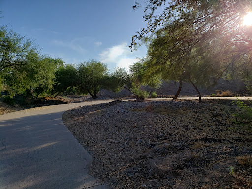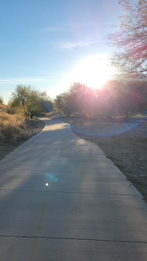 It is a pathway that follows an improved drainage Arroyo, and skirts the rear property line of a number of residences in the subdivision to the north. The subdivision has a couple of master-planned playgrounds in small grassy parks which can be accessed from this concrete pathway. Accessible 24/7/365; however, not readily visible from any roadway. I suggest parking around one of the playgrounds to access the linear park. The mosquitoes can be atrocious, but a little repellent, and you can ignore them and just enjoy the scenery. Wonderful concrete pathway great for sunset walks or early morning running. The course is relatively level so roller blades and bicycles...