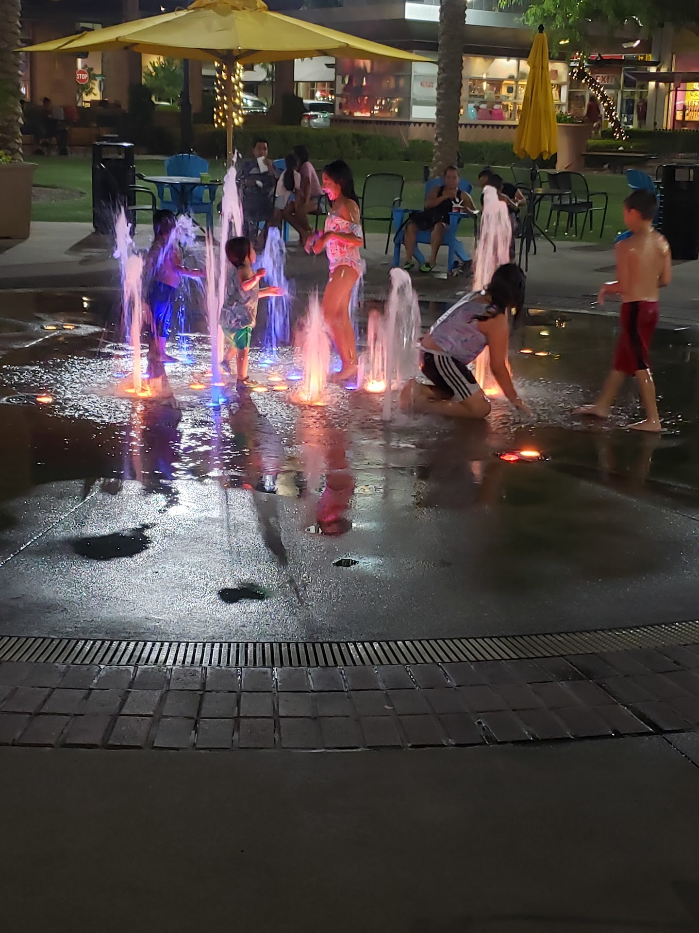 Read moreThe splash pad for kids is small but very clean and nice. At night, there are colorful changing lights in place for the fun and safety of the children. There are patio tables and chairs placed around the open area in the small park, to sit and relax. There is also a decorative style fence to somewhat enclose the area. Often, there are musicians playing and/or singing for the public, free of charge. There are several restaurants, public restrooms, and small shops in the...
