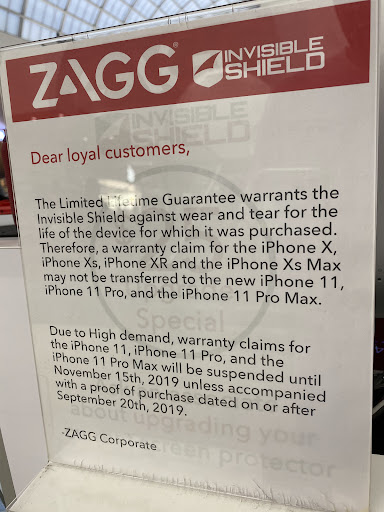 I will definitely be calling them later today to be put in contact with a manager or someone in charge. I had a Apple Watch series two Zagg luxe tempered glass screen protector and I brought it to this Zagg kiosk to have it installed but first I asked them if it wouldnât even fit because my watch is series 3. They said itâs the same and that it would fit. So they tried to install it and the sides wouldnât stick properly to the sides of my watch face, the sides just kept lifting back up. So they tried two different glass screen protectors they had on hand and neither one worked. They told me that âsometimes it just happensâ and ânot everyoneâs apple watches work with itâ then they advised me to let them install an Ultra Clear screen protecting film which they would swap for my tempered glass one and then charge me $8 to install. I found out later on the Zagg website that the series 2 glass screen protector does NOT fit series 3. I specifically asked them about that but instead they gave me the wrong information and charged me only to take my higher quality product for a lower quality lesser value one. They cheated me out of my money by giving me the wrong information and telling me that my watch just wasnât right or maybe had a defect with the screen not being flat. Keep in mind that my series 3 Apple Watch is BRAND NEW and shows absolutely no sign of any physical defect or screen abnormality.