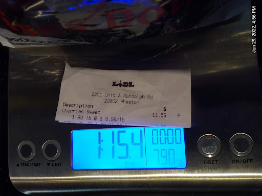6\29\22 I go to Lidl about once s week. The last couple of times I've felt cheated! I went to Lidl last week to buy grapes. I was charged for 1.97lbs but when I got home and put it on the scale, it was 1.17lbs! Yesterday, I went to buy cherries, that are not cheap! I was charged for 1.93lbs but when I got home and put it on the scale, it was 1.15! So now I'm really mad! Next time I go here, i will bring my scale, get a 2lb bag of flour, weigh it on my scale, and then on theirs. Call the manager over and show him! Montgomery County needs to test this place and consider a fine.