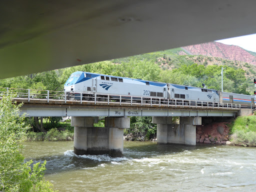 Came across this by accident looking for things to do. The park is brilliant, nice for walking and with plenty of seating. As you walk from the car park towards W 8th St, you follow the river and then you will see what we think is the best sites in Glenwood Springs, the meeting of the Raging Forks River with the Colorado River above which is a railway bridge emblazoned with the words Rio Grande. Better still just before noon you'll be able to get a photo of the California Zephyr train making its 51.5 hour journey from San Francisco to Chicago.
