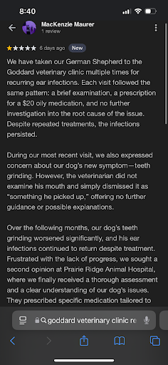 Whatâs even more alarming is that you accessed my personal records just to respond to my review, despite the fact that I never mentioned my dogâs name. This means you actively searched through private client information to defend yourselves, which is a blatant breach of professionalism. While Kansas may not have explicit laws on veterinary confidentiality, ethical standards set by the Kansas Board of Veterinary Examiners emphasize professionalism, accountability, and client trust. Publicly revealing details from a patient file without consentâespecially in a defensive response to criticismâis highly inappropriate and raises concerns about how securely you handle all client records. Pet owners should never have to worry that their private information will be used against them simply for voicing their...