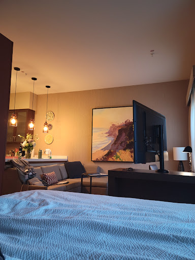Read moreWe stayed in room 308 (1 Bedroom Suite) the week of September 12, 2022. The hotel and room are in great condition. All of the employees that we had contact with were very nice. There was always lots of parking available in the hotel parking lot and it's very well lit. There isn't much in the immediate area of the hotel but it's perfectly safe and only a 15 minute drive to downtown Santa Barbara. However, the bathroom sink is in the bedroom. It's not actually inside the bathroom with the toilet and shower/tub. I personally really dislike this design because if one person is sleeping you can't use the bathroom sink without waking them up. But what's even worse about the design of the bathroom is that there isn't a single towel rack or hook anywhere near the bathroom sink or the toilet or the shower/tub or on either side of the bathroom door to hang a towel. In addition, I understand that the room that I'm assigned may not look exactly like the photos of the 1 Bedroom Suite on the hotel website but the front desk said that the 1 Bedroom Suite pictured on the hotel website (The bathroom sink is actually inside the bathroom with the toilet and the shower/tub. There are towel racks in the bathroom.) isn't available to anyone. In other words, none of the 1 Bedroom Suites actually look like the photos of the 1 Bedroom Suite on the hotel website. So we resorted to using the "closet" rods as a towel rack for all of our bath towels, hand towels, and washcloths. We also took a square freestanding storage unit from the "closet" area and placed it next to to the shower/tub to put our towels on so we can reach for them when getting out of the shower. This room is handicap accessible but that should have absolutely nothing to do with having towel racks or not. Everyone needs towel racks whether they're in a wheelchair or not. FYI the metal bars that you see in the photos that I posted are grab bars, not towel racks. I've stayed in hotels that don't have enough towel rack but I've never stayed in a hotel that doesn't have any towel racks at all. This seems like a major design flaw. Considering that we paid $366.00/night on average, this was extremely disappointing and...