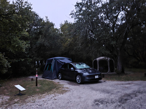 My advice is for Tesla users. You'll need a special 120v 30amp adapter to plug in your Tesla mobile charger to the RV power here.