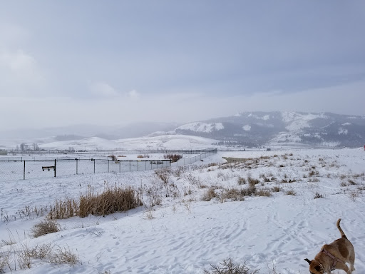 Parking is located across the street, not a big deal but something to be aware of. The ‘entrance’ isn’t well marked so we kind of wandered across along the fence until we realized the gates are on the opposite far side from where you park. No trees = no shade, and it’s very exposed to wind (and blowing snow on our visit). It seems to have some nice features, like agility test obstacles. And the trails outside the fenced-in off-leash part of the park look cool, but it was too cold and windy to explore much. Plenty of bags for poo,...