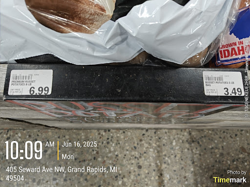 Read moreTypical Meijer math. Double the price for 1.6x times the food. 3.49 for 5 lbs and 6.99 for 8 lbs. These corporations are getting greedier and greedier. And they think their customers are too intelligent or to unobservant to notice the store is robbing them. Disgusting. Staffing has also gone downhill. They used to be helpful, friendly and engaging. But that was when Mitch was the general manager. Now they promoted the bigoted racist Jill who hates it when staff engage with customers. They're there to slave for her. Not build trust in the community and make friends with customers. I used to shop here several times a week now I shop here 1-2 times a month. In general I can get everything here at the big box store and they have weekly sales instead of monthly.