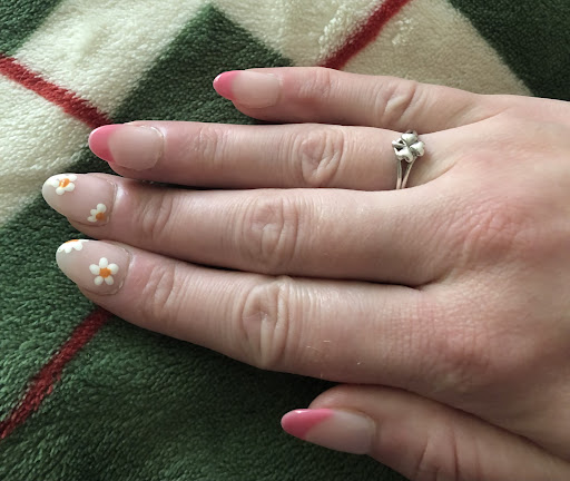 Lovely greeting when I came in the door. When I arrived for my appointment, there was a bridal party in the pedicure area & I was asked to wash my hands & it would be a little bit. I sat at the waiting area and then brought to a chair where I waited 20 minutes. l was helped by the same person who had been waiting by the front desk, I believe because they had taken on the bridal party even with waiting appointments already in place; another woman tired of waiting rescheduled for the next day. The person who helped to take off the dip on my nails after me telling them the dip was on my real nails, took a tip extender to take off one of the dip nails that had started to lift(this was from the previous time of being at this same nail salon)…I told them that the nail would not come separate like that because it was on my real nail. There must have been a misunderstanding because I told him again that I am against taking it off that way, but he proceeded to rip my nail off. He looked at my hand confused and told me he thought I had a tip on. I said to him I had just warned him that was my real nail. I feel like this is something he had to have heard before, & I was disappointed that all he did after that is put glue on it and walk away. He then had someone else help me 10 min later; where the technician asked me to move to her area. Overall this next technician did very nice job. I let her know that I wanted the dip with designs on my real nails. She cut one of my nails after me asking if we were unable to use my nails, and told me she cut it because it was weak and would have broken, I said okay and she put extensions on 4 of my nails. The one because the nails integrity was gone after the prior person had separated my nail from the dip, and that glue he used did nothing to repair that. The design and shape are beautiful, but the flowers she did on one nail had too much polish and opened up this next day. I’ll add a picture of it. Overall it looked good but after all that, I was disappointed it was a lot of waiting, some pain, and a mishap with the overall results. This nail set with 4 extensions(I was only charged for 3) plus tip...