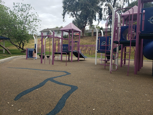 An enchanting little park to visit. Not very busy. Beautiful trees, lots of bird songs with flowering shrubs and trees. Lavender and Yellow collored flowers drifted down as I walked into the park. At the East enterance there is a little miniature citrus orchard memorial. Steps take you up to 2 picnic ramadas nearest the playground. No grills are here. By the soccer fields, there is handicap access into the park's playgrounds and 2 picnic pavillions with grills.