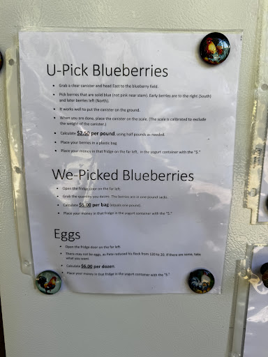 Excellent variety and quantity. See pictures for details. Definitely feels a bit run-down from the street, but that's the way old farms go! Don't let it deter you. Head in towards the house and you'll find the fridge with instructions, buckets, bags, and already-picked berries in the outdoor fridge. The gentleman was pleasant. I'll...