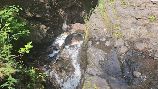 Awesome little hike off the side of the road. If you start the hike at the sign and head down to the overlook, you can have a beautiful site of the falls. If you're more adventurous, then take the path to the right of the overlook, and you can walk up to and over the falls. There is some erosion, so be careful as you cross. If you continue across the falls, there is a path that you can take to follow the creek and eventually get down to the creek bed and check out the area. It has a very fantasy world feeling going on, so I highly recommend it to those of you who like that.