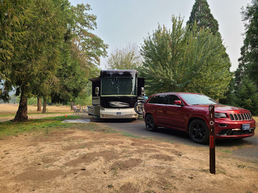 Read moreThe front gate wasn’t staffed the entire time we were there. Understaffed and/or COVID, I suppose. We had reserved online so we just went to our sites. A ranger arrived about an hour later to check us in. We asked if she would trim a tree that was rubbing against our motorhome, and she said “maybe if we have time”. They never did trim it so after a couple of days we did it ourselves! This was our first time here, and it was not a good impression. There is no screening of who’s coming in or what they are driving. We saw many people sleeping in their cars with piles of junk and trash laying around. Several times there were three or more cars in one site. There were a lot of very old campers and lots of tents. Another RVer we talked to said it had really gone downhill since the last time they were here. The rangers did kick someone out who was being a scary nuisance to us and others. In 8 years of travel, this is one of the few parks where we have felt unsafe. The sites and roads are paved which is a positive. Trees need trimming on all the roads. We saw very few, if any, sites that were level. Most of the longest sites (including ours) have a curve near the front which makes it interesting to park an un-bendable motorhome. Many sites are also awkward to back into due to the angle and trees. There is nice spacing between sites and tall trees that offer some shade. Grass is optional and is losing the battle to dirt and sticky weeds. There are many, many ankle breaker holes dug by ground squirrels and gophers. We even lucky enough to have a broken water sprinkler that we had to cover to avoid tripping over it. Each site comes with a coveted, tired picnic table. The campground is right by I-5 so there is constant traffic noise regardless of your site. The restrooms and showers are old and need a good cleaning. They did have toilet paper and paper towels. There is no WI FII. Verizon was 4g 4 bars. Satellite is possible in some sites. If you are towing, it is best to unhook your vehicle in the amphitheater parking lot or you will block the road at your site. We visited some of the wineries and breweries. It was very smoky when we were there so didn’t do any outdoor activities. Definitely left a bad taste...