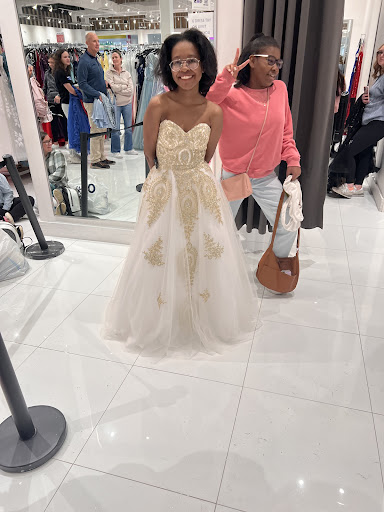 Read moreThis sleek gold dress was exactly what I needed for this event, it was perfect! I spent two days searching for a dress that could fit me. I'm not plus size enough for plus sizes and I'm not small enough for regular sizes so it was a difficult task! I'm big busted and tall 🤣 so finding any clothes has always been a challenge! I came in an hour before close one night and got to work trying on as many dresses as I could and they were so nice! The attendants tried their best to help me and the dress I chose that night just didn't quite fit the mark! I came in the next day for round 2 and it was prom 🥲 so you can only imagine the chaos and lines to try on the dress, with that being said I only spent maybe 35 - 40 minutes waiting before I quickly tried on my final 3 and found this stunning dark shimmery sleek gold dress that fit perfectly without needing alterations ( my event was the next day 😬 )