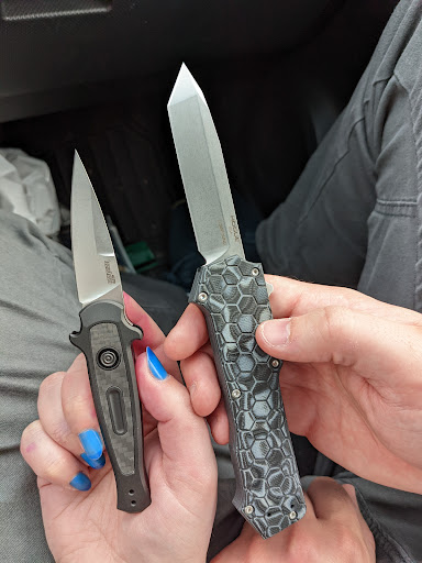 This place is pretty sweet. It's clean, organized and have a variety of knives including used knives. I ended up buying a knife but knocked a star off due to the weird vibe we got while browsing. My wife even made a sarcastic comment that the guy working there at the time of our visit was "friendly." At first, I didn't know what she was talking about as I was not aware there was someone sitting behind the counter. But once I took noticed of him, not a word from the guy to see if we needed assistance or have questions. So, that made it a little awkward. However, everyone has good and bad days so it wasn't too big of a deal but for future reference, a simple greeting would make consumers feel a little more welcomed. Still stoked over my new...