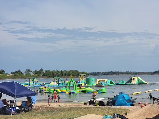 A couple tips: make sure to get reservations ahead of time and arrive at least 10-15 min ahead of your reservation time to get checked in, vested up, and get a lay of the land. an hour is often plenty (at least for your first trip) as this is really physically exerting stuff to go on, over, under, and up all the barriers - not to mention getting yourself back out if the water all the time when you fall in (not if, because you will), there are platforms to help you to get back on and those platforms have a small helper step to make getting out of the water easier. If you want to wear sunglasses or a hat, make sure you have a strap or a clip because you will fall in, and they'll potentially fall in the lake. I lost my visor (fortunately it was recovered by someone else and returned later). if you're not in the same shape you were in during your 20's, you'll likely feel this later! 😀 consider packing Advil if you're someone who typically needs it after this type of activity! bring plenty of water, and maybe a snack for afterward. This is especially true for kids. Extra water is useful for foot rinse before you pop into the car. since there is a free beach right next to this, you may want to pack a cooler, chairs, a tent/umbrella, and towels for hanging out after. before they let you hang out on their beach, I didn't get the feeling we were invited to stay after. they have really inviting looking umbrellas and chairs on their beach. You have to...