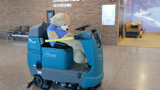 Overall, I like this airport (hence the 4-star rating); it's very quiet and relaxing. The bathrooms were nice and clean...I'm guessing they were remodeled within the last 1-2 years because everything still looked new and pristine. If not in the last 1-2 years, then the employees are doing a magnificent job in maintaining it. I can't say I love (5 stars) this airport because contrary to its unique look and quietness, it's kind of boring. However, I will say that I got a wonderful surprise on the day we departed because I got to witness six Air Force F-35s landing at this airport (see attached pictures), and a giant teddy bear cleaning the floors (see...