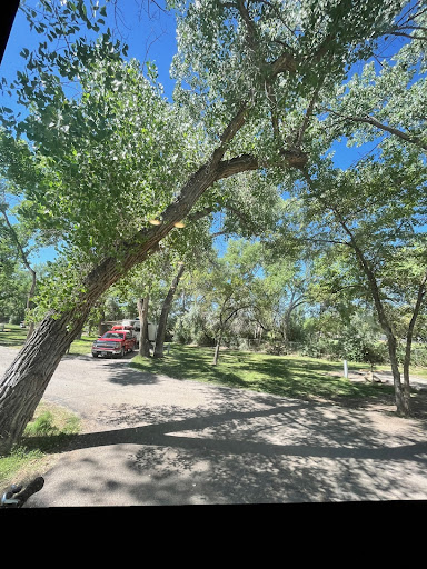 Read moreNice little park but not our favorite. We have a 41 ft 5th wheel and a long bed dually. We gave this information when we booked several weeks in advance. Not enough room for our 5 slides with trees on both sides. Love that they have plenty of trees, but our dining slide was inches from a tree, which we had no choice about as we had to make accommodations for the 2 slides on the opposite side with the tree in between. Had to park truck on the road. On Mondays and Thursdays, they water the grass. The sprinkler heads are not turned strategically away from the campsites. The spray is extremely high pressured and goes about 30 feet. The spray heads should be fanned out, not in a jet stream near the RVs. Unfortunately, our entire site got soaked (windows, rugs, chairs, tables), and one sprinkler head was directed right at the seals of our bedroom slide, so water got in, ran under our bed and soaked an 8 ft runner. We had to use beach towels to clean up the water. Dave, one of the camp hosts, was wonderful. He tried to get us a space that would fit our big rig better and was responsive to our requests and complaints (after we were told there was nothing they could do about it) within the realm of his responsibilities. In fact, after we complained to the office about the water in our RV and they said to call Dave, he was nice enough to take up our rug and lay out over the metal picnic table so it would dry in the sun. The pad itself was completely submerged in water. There was nothing else he could do but turn off the sprinklers (which were due to be shut off) at that time. It's a very pretty park, and with a smaller rig and better management of the sprinkler system, there...