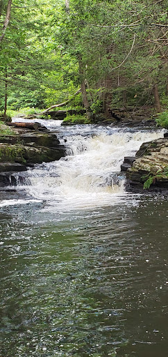 Read moreThis is a trail within the confines of Promised Land State Park. The trail itself can be done as a loop and is just a bit over a mile long. Cross when you get to the second bridge. While a trail does continue on past this point, it requires a water crossing and adds nothing in scenic enjoyability. The trail is almost entirely flat but it is all roots and rocks so while its very easy hiking you do want to be steady on your feet to do it. I also recommend boots to support secure footing without ankle turns. It was a bit squishy in places today due to recent rain but not problematically muddy by any means. The falls are very pretty and would make for good picnic stops. There were also several fishermen along this stetch. Good for dogs and young children. No bathrooms right here...stop at park information or concession area. Ps...any mycology fans...check out the grassy area near the concession parking..photos...