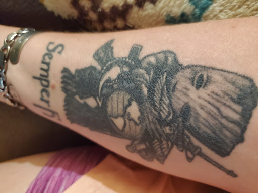 UPDATE* Per usual, Josh Painter delivered with excellence! My husband and I had a conversation with Josh about some more work we wanted. He literally drew out the background on my husband's arm with no stencil. Josh gave my husband the background for his eagle he had wanted for a long time. As for me, I love Groot, and I'm a Marine Corps Female Veteran. So I found a photo online, and asked Josh to tattoo it. He added a little so it was his and not completely offline. Josh puts 1,000% in everything he does. Thank you Josh! Your...