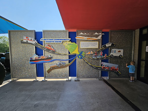 The Children's Museum of the Upstate was amazing. It was full of intellectually and physically engaging opportunities for kids, and kept our kids engaged for hours and wanting more when they closed and we had to head home. If you live locally (even in neighborhood cities and counties), keep an eye out for a museum pass at your local library which will admit up to 5 for a week for free. There are three floors. The entrance is on the middle floor and has a ton of fun things to explore and learn about. The body section has play dentistry and surgery activities where you can learn about the mouth and body organs, a rock wall to climb and stay healthy and active, a stomach you can enter and slide down, and a large series of clear tubes that show how the lungs work. There's a pretend play section in the back where they can pretend to be bankers and salespeople. To the left at the entrance there's a wind and air section with a wind tunnel and more clear tubes that kids can put balls inside and watch them fly through. There are vacuum tubes that blow out air that kids can experiment with Bernoulli's principle and watch balls "levitate." Beside that, there are two derby race tracks where kids can build their own cars and race them down and a life size pretend race car that they can practice a pit stop on. In the middle of the entrance floor there is a large climbing area that goes all the way up and over a path through the middle of the top floor. All the exits are on the middle floor (kids can't leave on the top floor), but there are multiple exits around the climbing gym, so keep an eye out and make sure your child doesn't run off from the opposite side they entered. The top floor has a STEAM room that is only open a few days a week (I'm not sure if it changes, but it was open 1-5 Tuesday, Thursday, and Saturday this summer I think. The room has a theme each week and students have several STEAM (science, technology, engineering, arts, and mathematics) activities they can participate in related to that theme (the theme was Wizard of Oz when we were there). There's also a reading nook, a play area for littles, a putt-putt course, and a construction area on the top floor. The construction area teaches a bunch of different design and engineering concepts, and has a tool area where kids can pretend play with construction equipment and play tools. The basement floor has a large water play area just inside with a section for infants and toddlers and a large area for big kids to stand and play. The self-serve cafeteria is adjacent to the water play area, and includes a few fridges with meal options, a couple open displays of various snacks and chips, and a couple drink fridges and a Starbucks coffee grinder and brewer (it has Blonde Roast, Pikes Place, and a dark roast option). It's all self-service with a self-checkout and it was all surprisingly reasonably priced. The bottom floor is also where they host a bunch of camps, so there is a check-in area in the bottom of the stair well and a bunch of camp rooms. Finally, there's an outdoor playground located off of the basement floor that has a tire mountain for climbing, lots of rubber track area throughout for running, and a large play feature to climb and slide down.