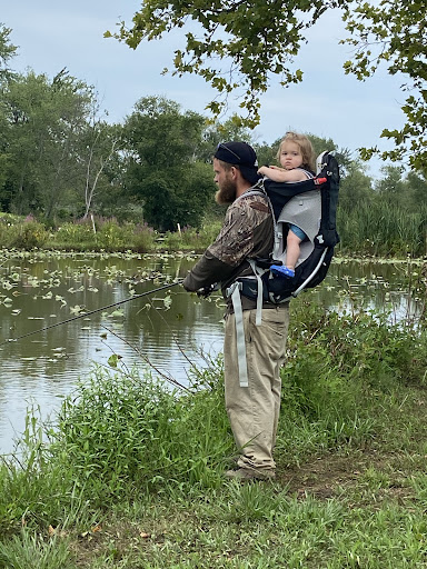 great spot for a nice walk (with our without your 4-legged buddy! tho I'm told dogs are not allowed... missed that notice😉) This appears to be a fishing hot spot! There's a paved road along and around the water/river as well as unpaved paths, a boat ramp (was closed due to flooding), benches along the water & there's even a shaded picnic area with a bbq grill! OH! & a port-o-pot!!! Plenty of parking/large parking area out front. Just be mindful while walking through the unpaved areas as it is TICK SEASON! & they are definitely out there!!! take precautions &...