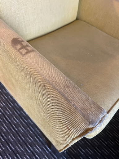 I then did my usual security check of the room and was disturbed. At ground level, 2 large windows faced a parking lot. The screen had been pulled away on one window, like someone had tried to get in. I also noticed the room door's security latch looked bent. I put a chair in front of it. That's when I started noticing the furniture. It was filthy. I mean filthy. I cannot imagine how anyone would sit on either the couch or chair.