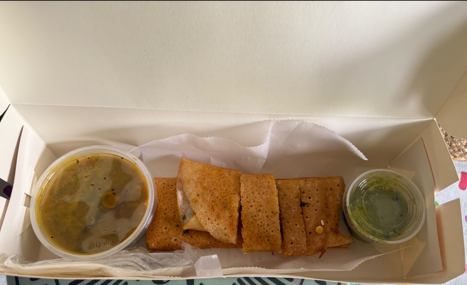 They recently opened the kitchen and we got veg thali, paratha and masala dosa. Everything tasted good. Portion size for the thali is good(picture doesn’t include the 2 tawa rotis we got with it). This is great to have on 135.