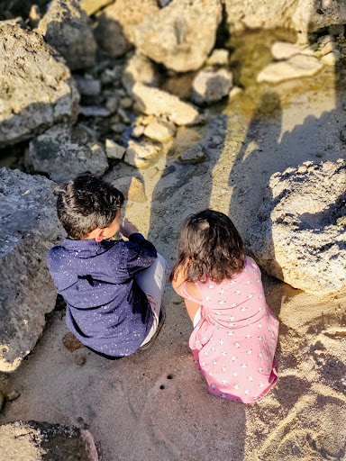 Their mom enjoys taking them here I guess runaround feel the Cool breeze and look through the rocks on the shore, it also seems that many people enjoy exercising in this park. Yes, bring bug...